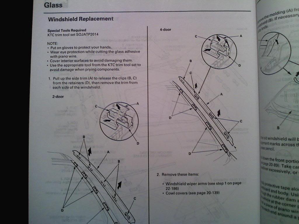 Do not use any metallic tools to remove the roof molding or you may chip the edge of the windshield and some cracks in the windshield will occur.